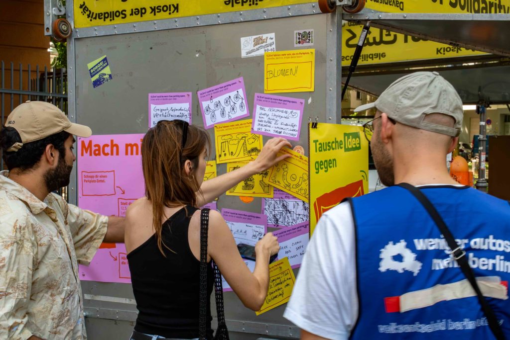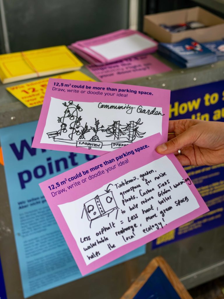 12,5 m² und viele Möglichkeiten – There are around 230,000 parking spaces in Berliner Ring, each 12.5 m². What if we rethink this space? As a space that brings social and ecological value to the neighborhood. Together with berlin autofrei and the Kiosk der Solidarität, we asked Berliners for their ideas.
